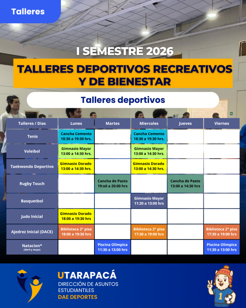 ¿Quieres mantenerte activo/a, conocer gente nueva y disfrutar tu vida universitaria al máximo? La Dirección de Asuntos Estudiantiles (DAE Deportes) de la Universidad de Tarapacá tiene todo listo para ti.